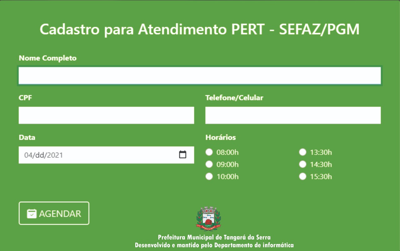 Para fazer o agendamento, o cidadão deve clicar no link https://tangaradaserra.mt.gov.br/sefaz/atendimento, digitar nome completo, número do CPF, número do telefone ou celular, escolher a data e o horário do agendamento e, por último, clicar em AGENDAR.