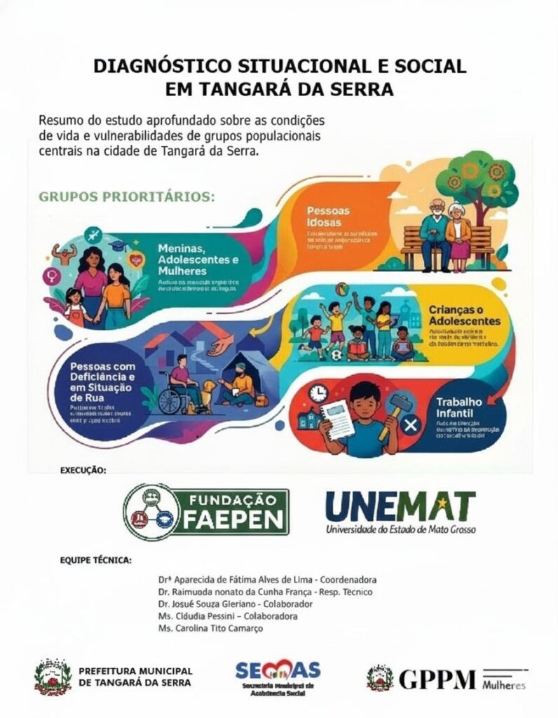 Mais do que reunir dados estatísticos, o estudo busca ouvir a população sobre suas vivências e desafios cotidianos. A partir dessa escuta qualificada, o diagnóstico pretende contribuir para ações públicas mais eficientes e eficazes, ampliando o acesso aos serviços e promovendo a melhoria da qualidade de vida em Tangará da Serra.