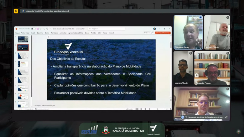 A Escuta da Sociedade é parte integrante das ações de diagnóstico e construção colaborativa das soluções para a mobilidade urbana de Tangará da Serra. A presença da população é fundamental para garantir um plano que represente a realidade local e atenda às verdadeiras necessidades da cidade.